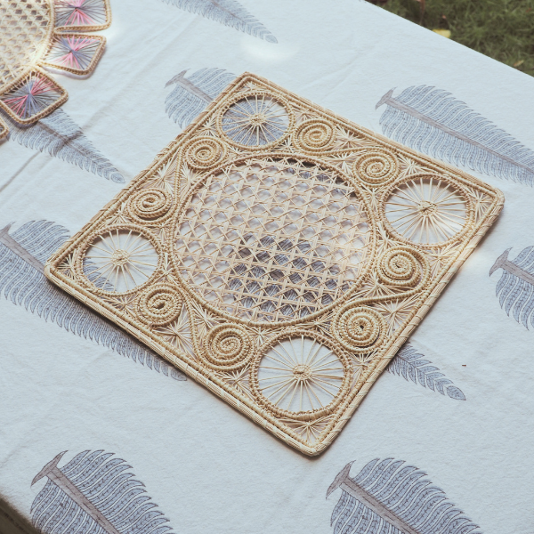 The Caracola Square Placemat is ethically handwoven by the artisanal community of Usiacurí, Colombia. Located along the coast, this small town dedicates primarily to craftmanship.